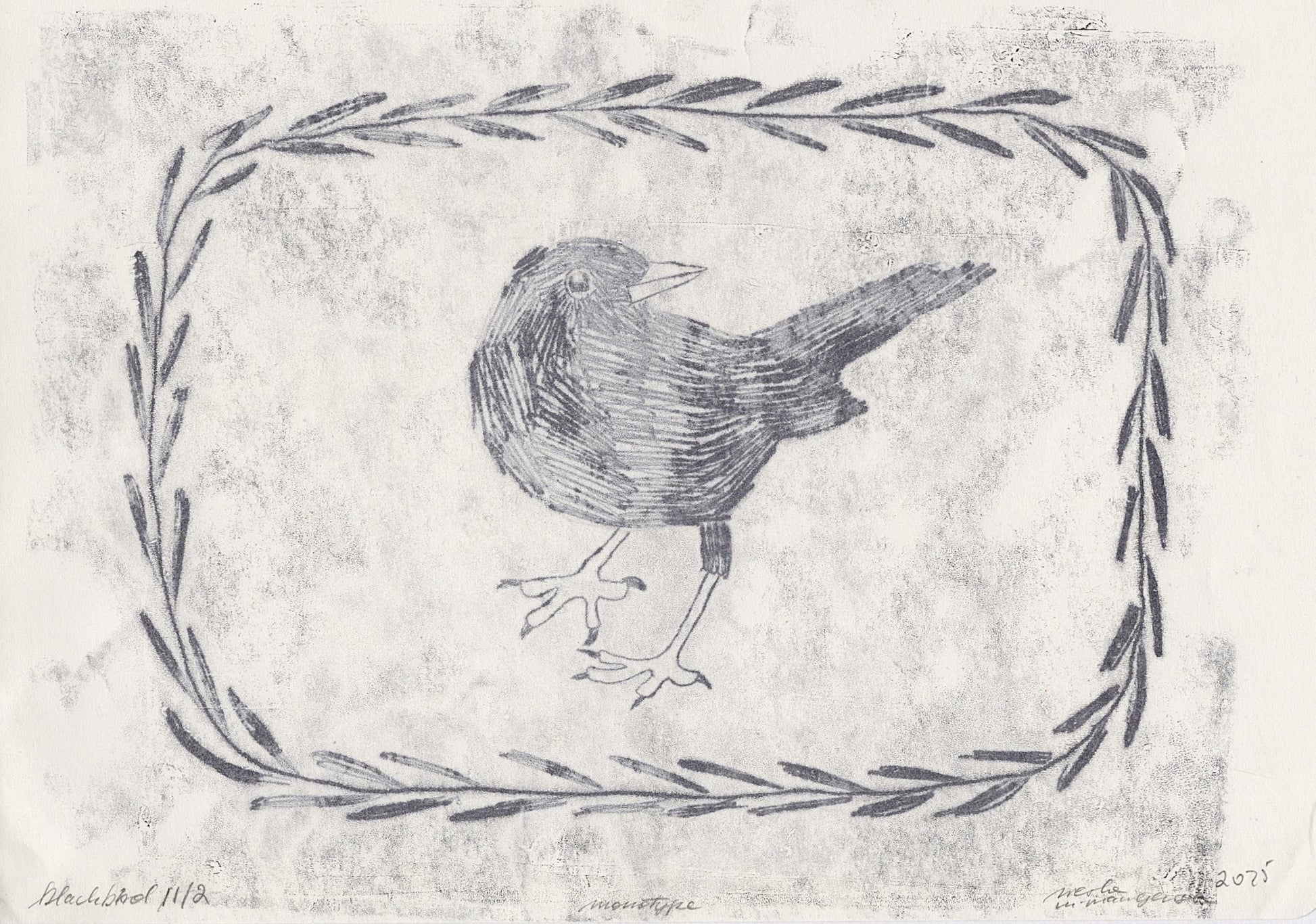 magiczna monotypia wykonana na beżowym papierze o gramaturze 70g/m2
