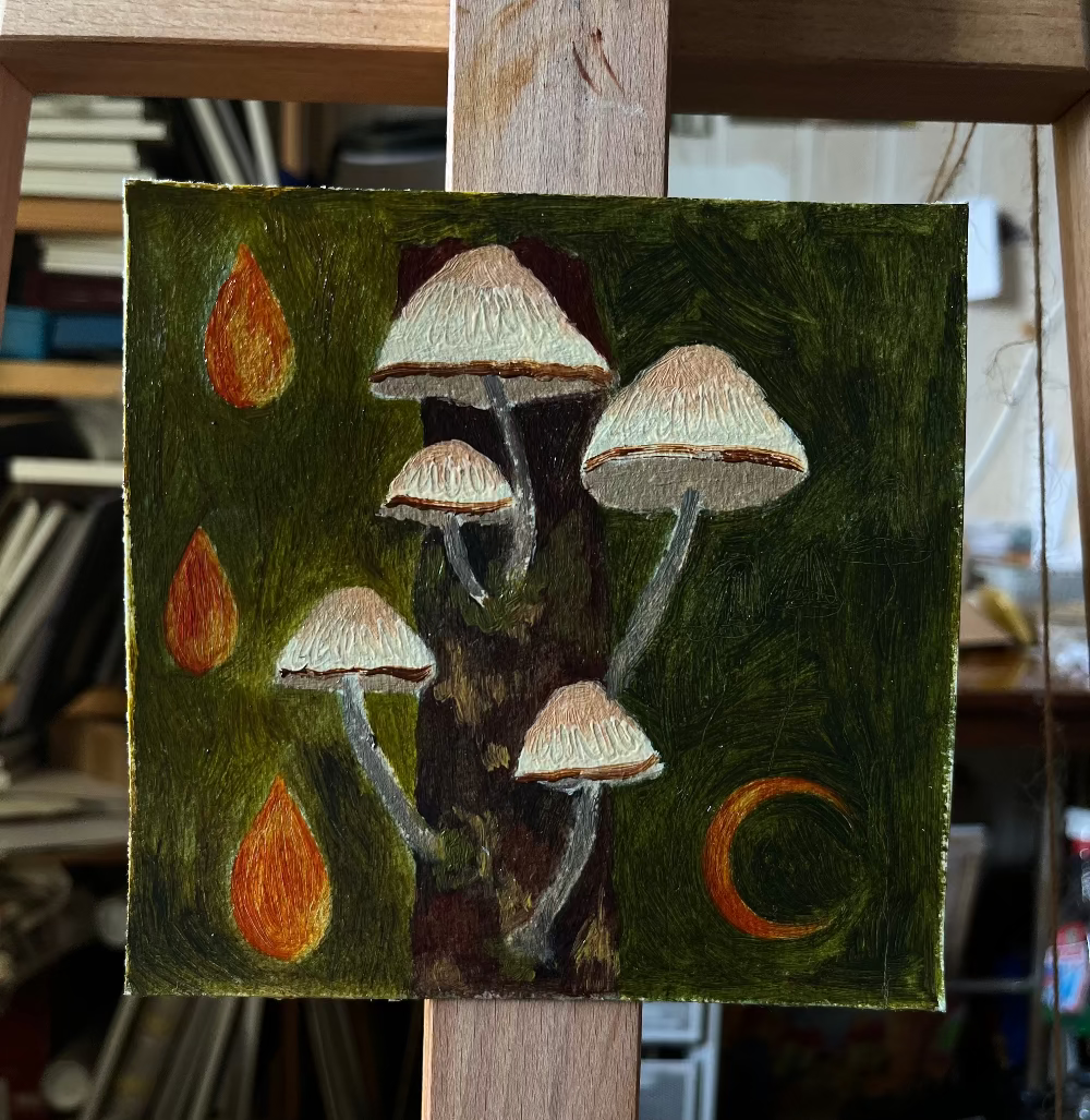 ołówek, gwasz akrylowy, olej na papierze bawełnianym