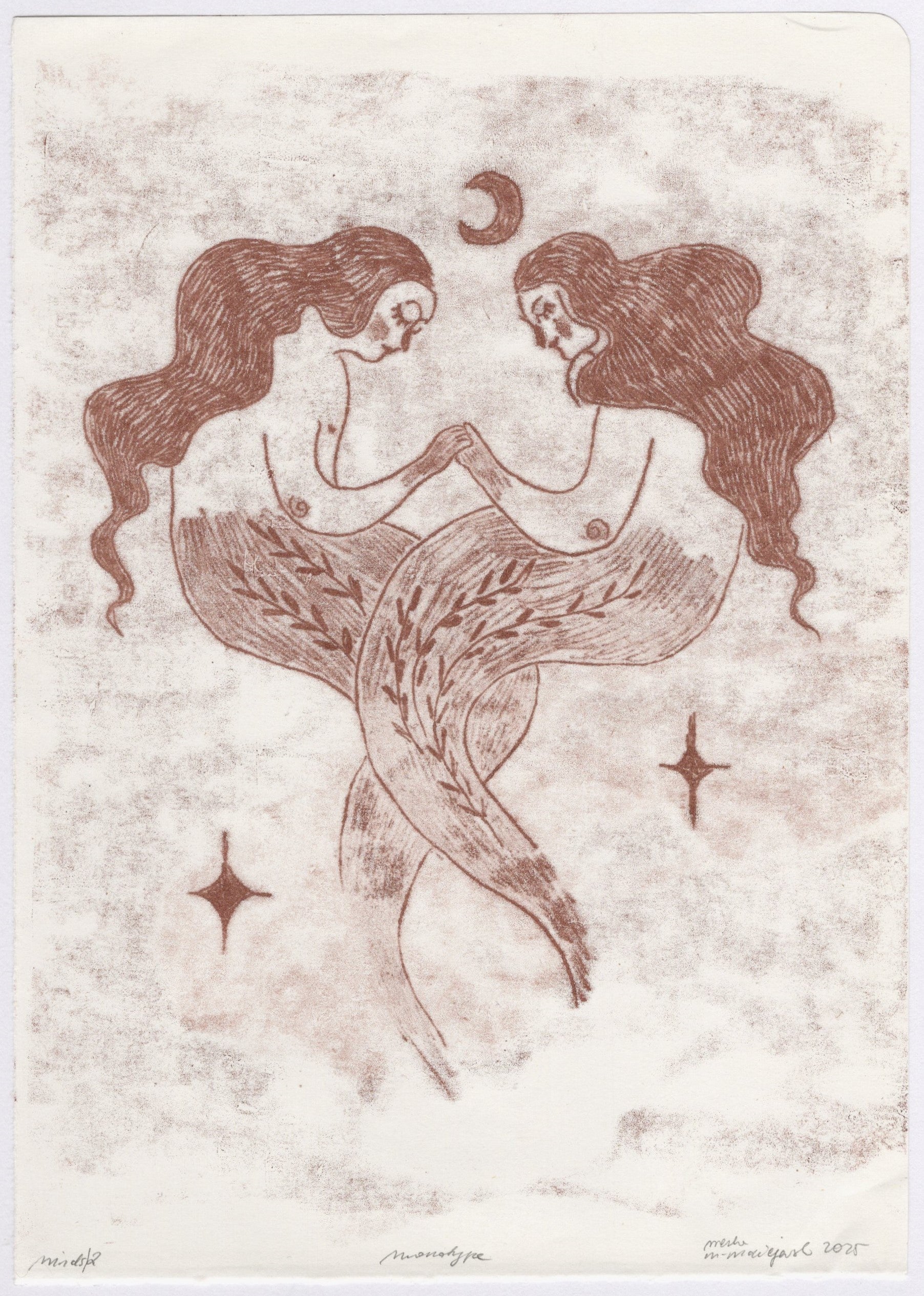 magiczna monotypia wykonana na beżowym papierze o gramaturze 70g/m2