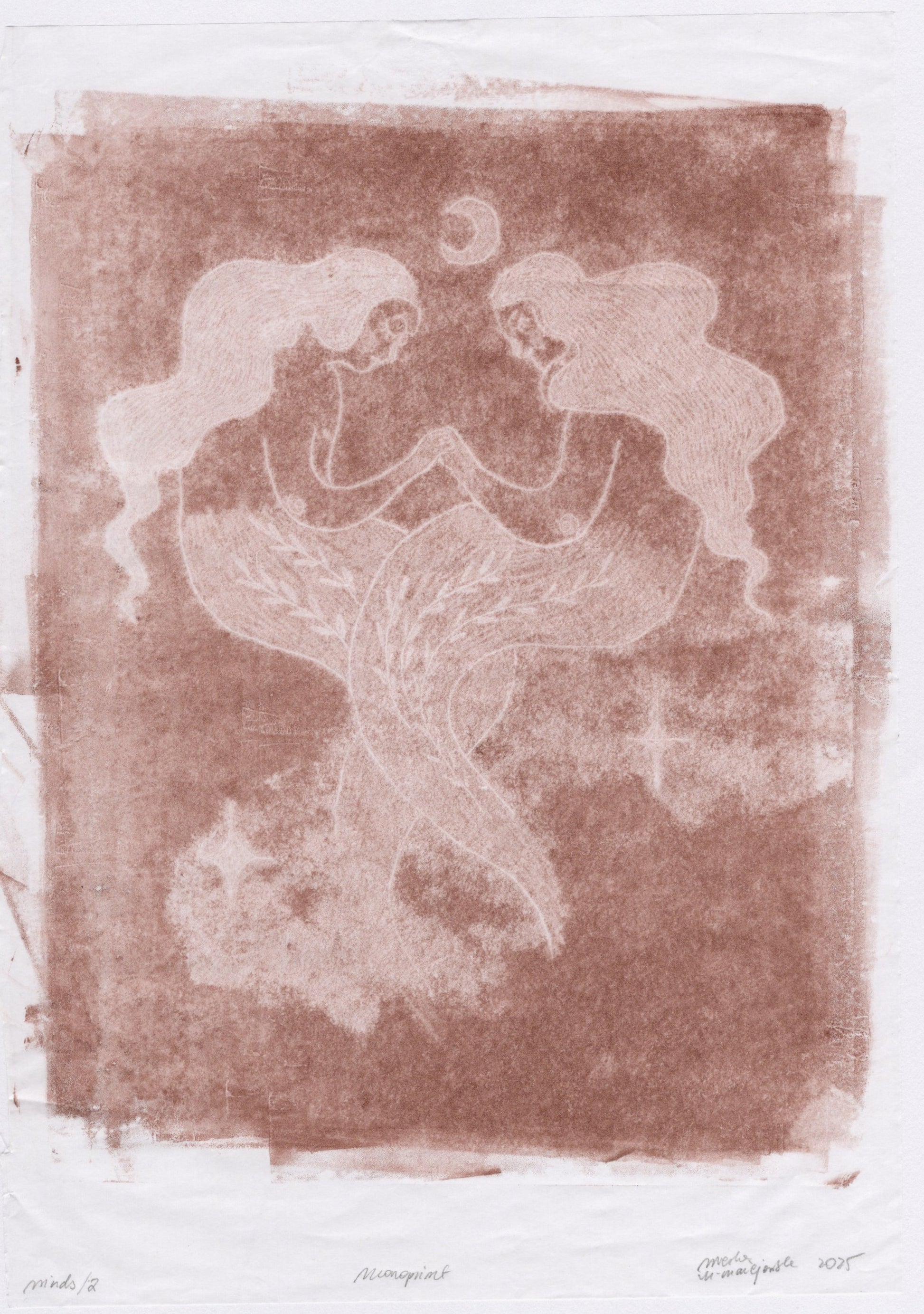 magiczna monotypia (ghost print) na półprzezroczystym papierze o gramaturze 50g/m2
